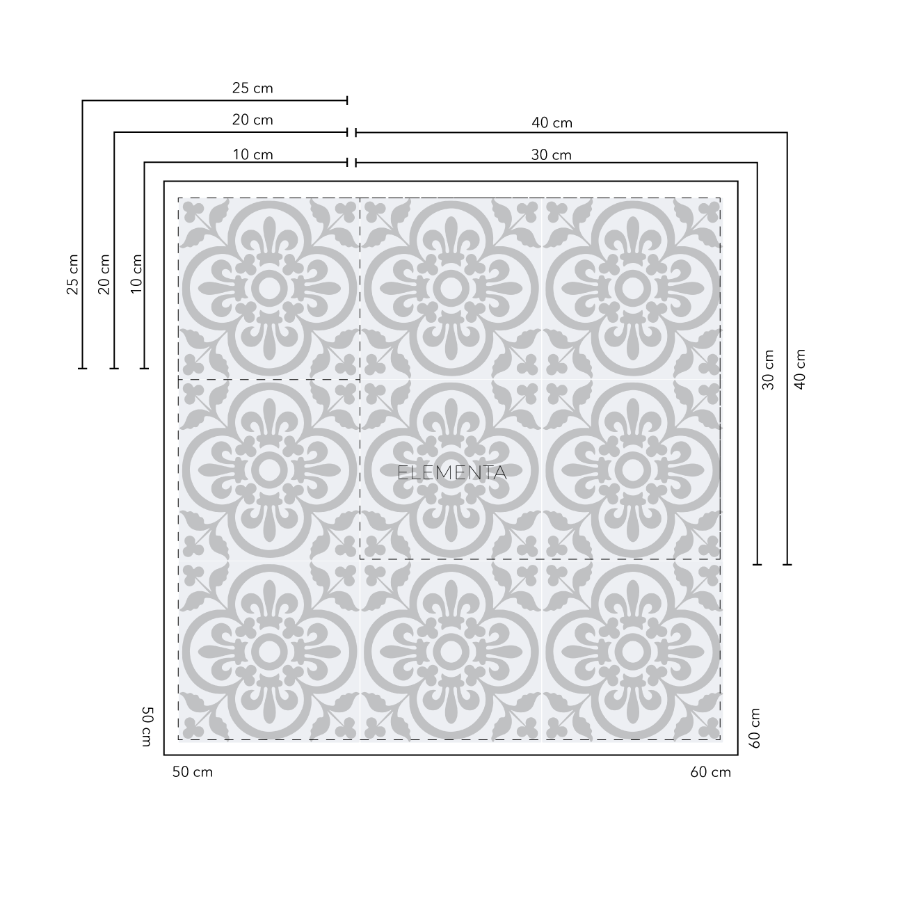 Tamaños disponibles: 10x10 cm, 20x20 cm, 30x30 cm, 40x40 cm, 50x50 cm, 60x60 cm